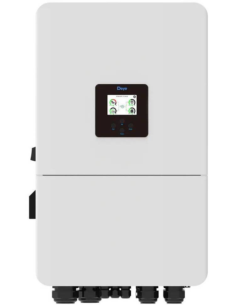 Trojfázový hybridný menič Deye s výkonom 15 kW je ideálnym riešením pre efektívne riadenie solárnej energie. Vybavený pokročilou technológiou 2 MPPT a podporou nízko-napäťových batérií (40-60 V), ponúka vysokú účinnosť až 97,6 %. Umožňuje paralelnú prevádzku až 10 jednotiek, integráciu s dieselovým generátorom a inteligentné riadenie energie s 6 programovateľnými obdobiami nabíjania/vybíjania. S IP65 krytím, farebným dotykovým displejom a WiFi modulom je vhodný pre domácnosti aj komerčné projekty. Záruka 5 rokov, rozšíriteľná na 10 rokov.
