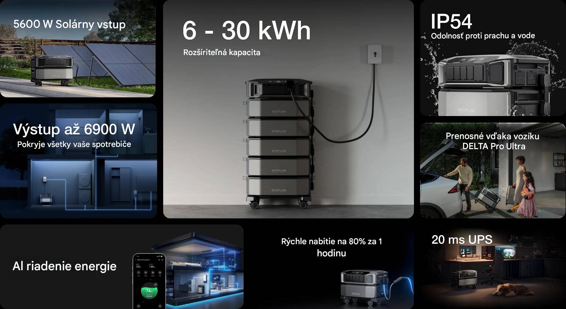 Možnosť pripojiť batérie s kapacitou až 30 kWh, čo vám zabezpečí týždne komfortu. Pokryje všetky vaše spotrebiče s výkonom až 6900W. Dobiť ho môžete až piatimi rôznymi spôsobmi, a to rýchlo a efektívne. S aplikáciou EcoFlow máte plnú kontrolu nad správou energie, a to všetko s 5-ročnou zárukou.